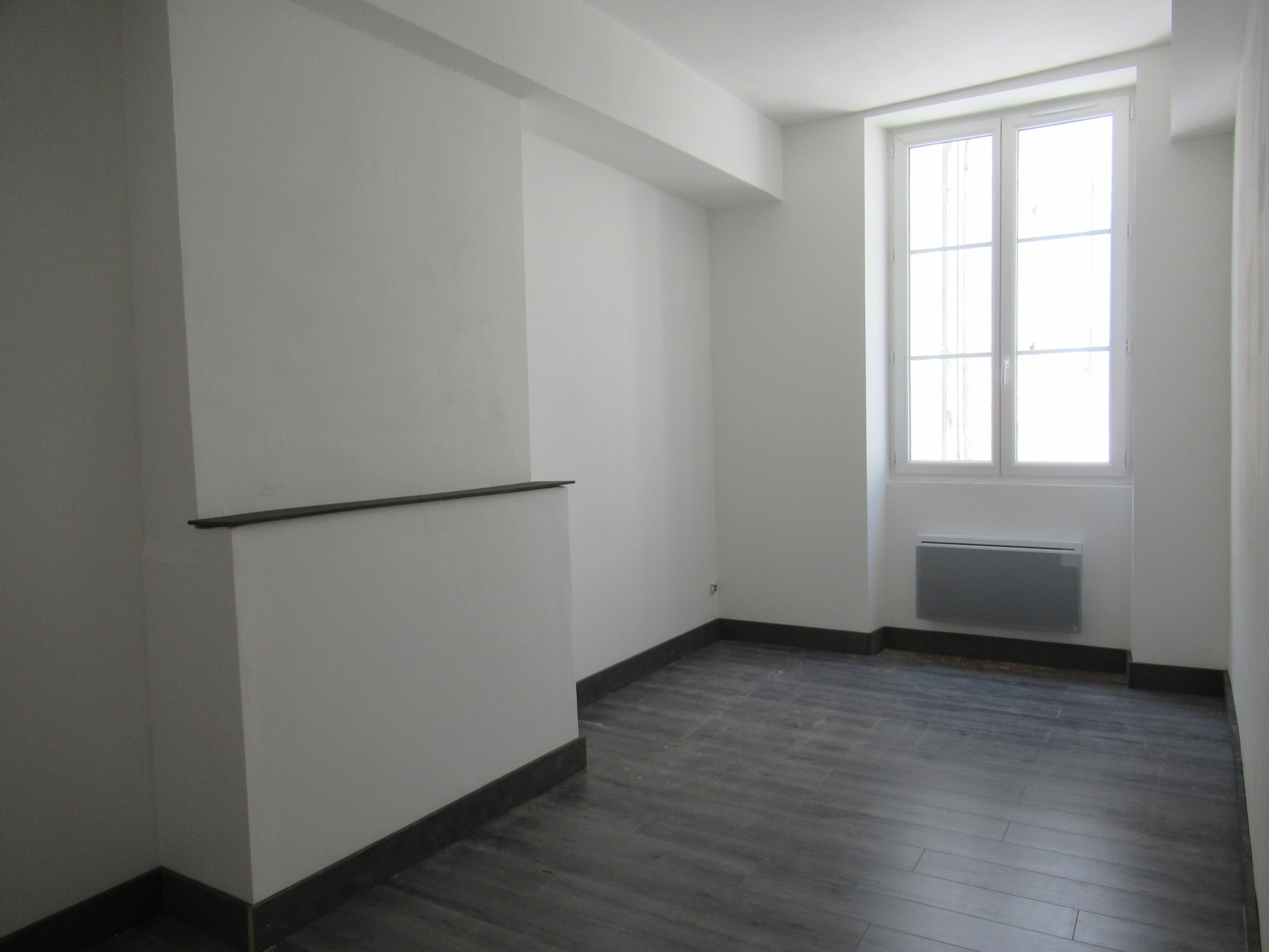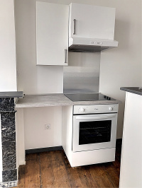 BAZAS CENTRE, RUE FONDESPAN - RUE NEUVE : Appartement T2 au 1er étage, en parfait état d'environ 45m², composé d'une pièce à vivre, avec kitchenette (meubles, évier, hotte, plaque vitrocéramique, four) et placard-penderie, une chambre, un dégagement et une salle d'eau avec vasque, sèche-serviettes, douche et WC. Les risques auxquels ce bien est exposé sont disponibles sur le site Géoriques : www.georisques.gouv.fr. Fibre optique, doubles vitrages récents, convecteurs électriques, cumulus 150 litres. Electricité, eau et ordures ménagères sont à la charge du locataire. Disponible à compter du 1er février 2026.